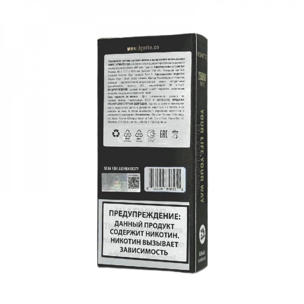 Технические характеристики Электронная сигарета Ignite V250 Gold 25000 - Butterscotch Coffee (Кофе с ирисками)