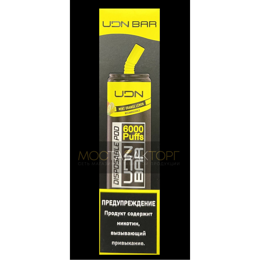 • Электронная сигарета UDN BAR Mint Orange Lemon 6000 затяжек (УДН Бар Мята Апельсин Лимон)